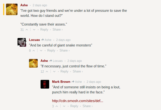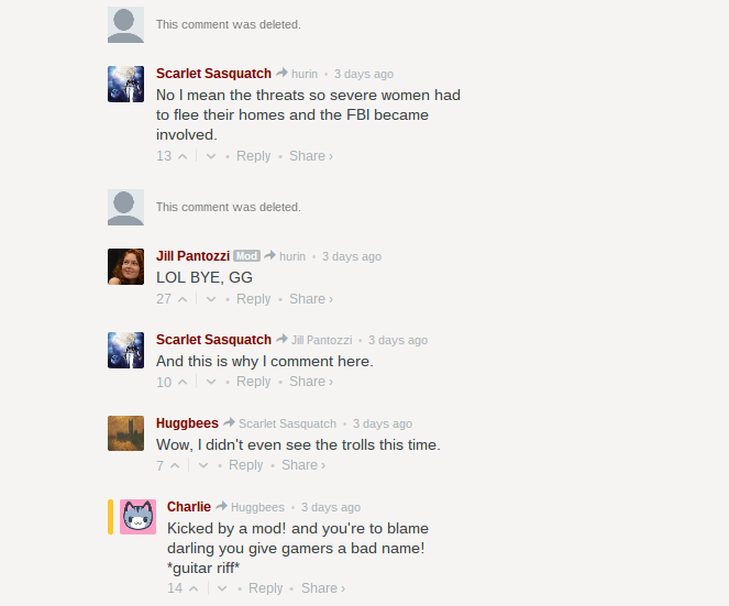 …and over on our piece about Leigh Alexander’s recent public speech, a Gamergater got Bon Jovied. *shreds triumphantly* Until next time, friends!