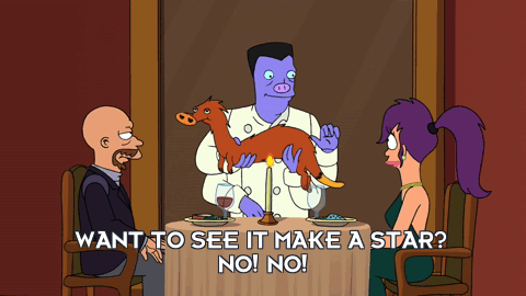 The alien celebrity chef Elzar is Futurama‘s take on Emeril Lagasse, complete with the requisite “BAM”. Elzar’s is finest restaurant in New New York, where you’re likely to find the host offering his diners a pinch of spice weasel. Looking for something a little more casual? There’s always Panucci’s Pizza. Tell them I.C. Wiener sent you.