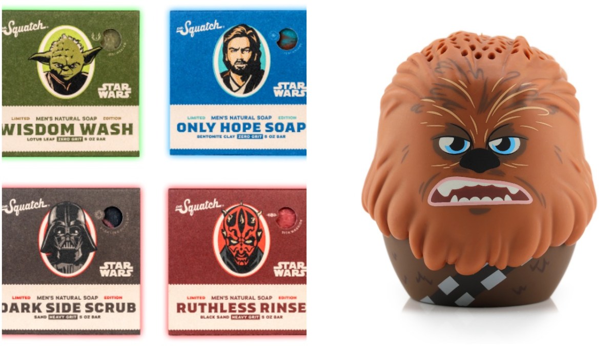 If you’re looking for pocket-sized gifts to stuff your stockings, you could go with the Star Wars R2D2 Classic Tamagotchi or The Tiny Book of Grogu. We also love this Star Wars Soap set from Dr. Squatch, which you can give as a set or split up for individual gifts. And for music lovers, there’s the Chewbacca Bitty Boomer, a wireless Bluetooth speaker that fits in the palm of your hand.