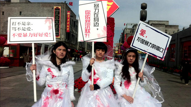 Much like Russia’s Pussy Riot, these ladies, referred to as The Beijing Five, were involved in large, theatrical protests—gathering dressed as blood-splattered brides to bring awareness to domestic violence, singing feminist songs on the Beijing subway, and creating Styrofoam toilets to push for more female bathrooms