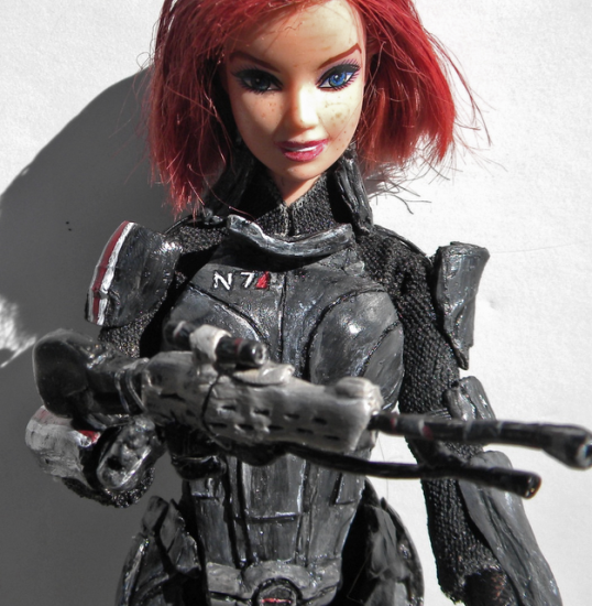 The only thing better than this FemShep Barbie, crafted by IntrovertedWife, would be some sort of system by which one could submit the alphanumeric score that represents their Shepard’s appearance, and receive a corresponding representation of them, doll, poster, or otherwise.