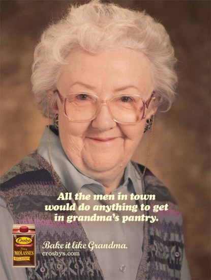 So, this exists: Crosby’s, a Canadian company that produces molasses, has been running a campaign featuring a bunch of sweet-faced grandmothers using dirty, dirty double entendres to sell their products. Now, there was some worry that maybe these women had no idea what their image was being used for, a lot like that episode of Friends when Joey (Matt LeBlanc) found out a photo of him was being used for a VD ad without his knowledge. But then, in addition to the print ads, there was also a video.