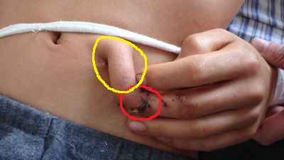 My question, after looking at that picture for a while, is where did about half of that finger-to-stomach tissue come from?