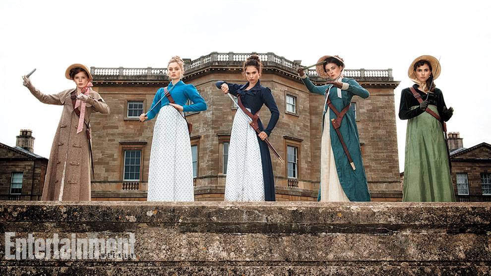 Entertainment Weekly has the exclusive first look at the cast of Pride and Prejudice and Zombies. The image features Elizabeth (Lily James), Lydia (Ellie Bamber), Mary (Millie Brady), Jane (Bella Heathcote), and Kitty (Suki Waterhouse). But something is missing here. What is it…