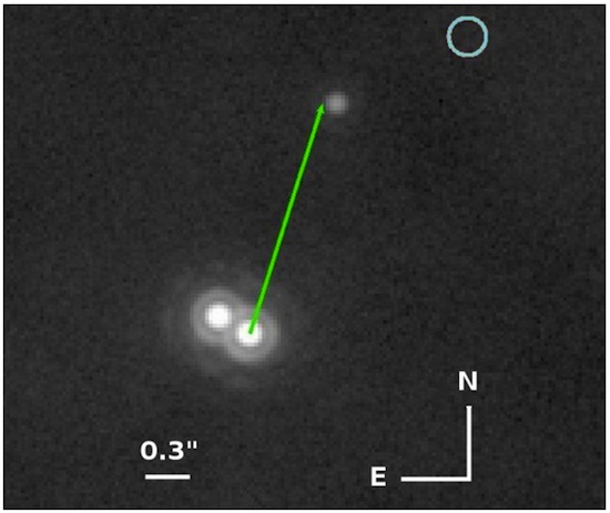 The research team at Joseph Fourier University know that they’ve captured an image of something orbiting the binary stars of system 2M0103, thanks to the telescopes at the European Southern Observatory in Chile. Just what that something is, though, is going to require some more sorting out. Thanks to archival data from the telescope, they can be sure that the object is orbiting the two stars. And at a distance of 12.5 billion kilometers away from the stars, it seems likely that whatever it is formed from the accretion disc of rubble and dust surrounding the binary system.