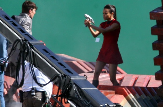 Here’s Cumberbatch on the left, and Zoe Saldana on the right. Man. Those Starfleet skirts really are short, aren’t they?
