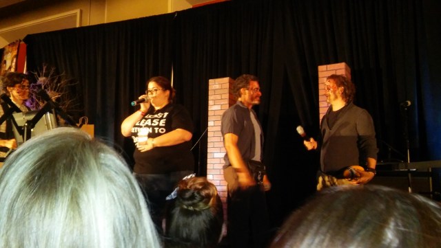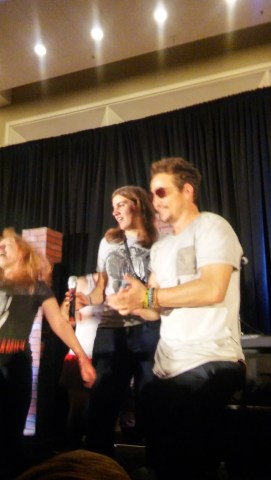 Saturday people lack convention context, not having been there from the beginning, and Sunday people … well, Speight joked that the Sunday people are clearly only there for the J2 experience. This was an unexpected little piece of hilarity, as it was pretty obvious that he wasn’t actually hating on anyone, just making a thing out of Sunday People for amusement. He also explained the convention rules thoroughly while Louden Swain jammed in the background and told the fans that he encouraged the taking of photos and videos and the tagging and sharing of those photos and videos, but cautioned us not to take vertical video—even if you’re trying to capture Jared.