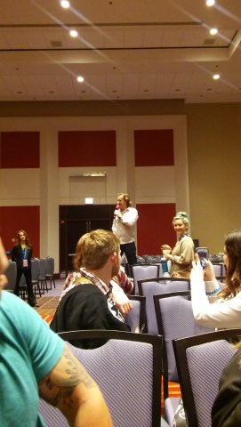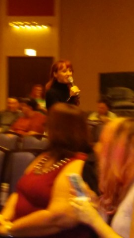 - Rewards question-askers with little things from her bag that she “stole” from hotel rooms on the convention circuit – sweetener packets, tiny shampoos, etc.