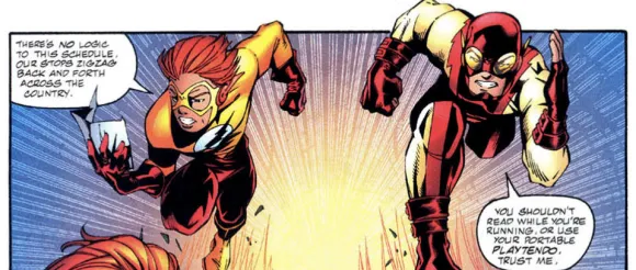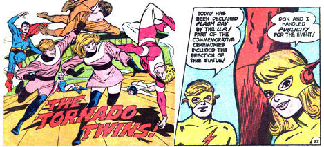Let’s backtrack. In the 1960s, the 30th century team known as the Legion of Super-Heroes met the Tornado Twins, a couple of fun speedster siblings. They were Don and Dawn Allen and explained that they were direct descendants of Barry Allen. They organized publicity for the holiday known as Flash Day and even once dressed up in Kid Flash costumes.