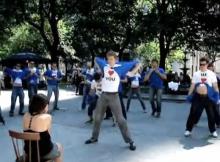 What happens when a flash mob, a circus school grad, romance, and a great deal of awkwardness combine? The video below. Our no-longer-a-bachelor in questions recruited all his friends together to stage a song-and-dance number for of over-the-top gestures, professions of love via cue cards, and a heckuva lot of Napoleon Dynamite-esque dance moves. All in bustling Madison Square Park.