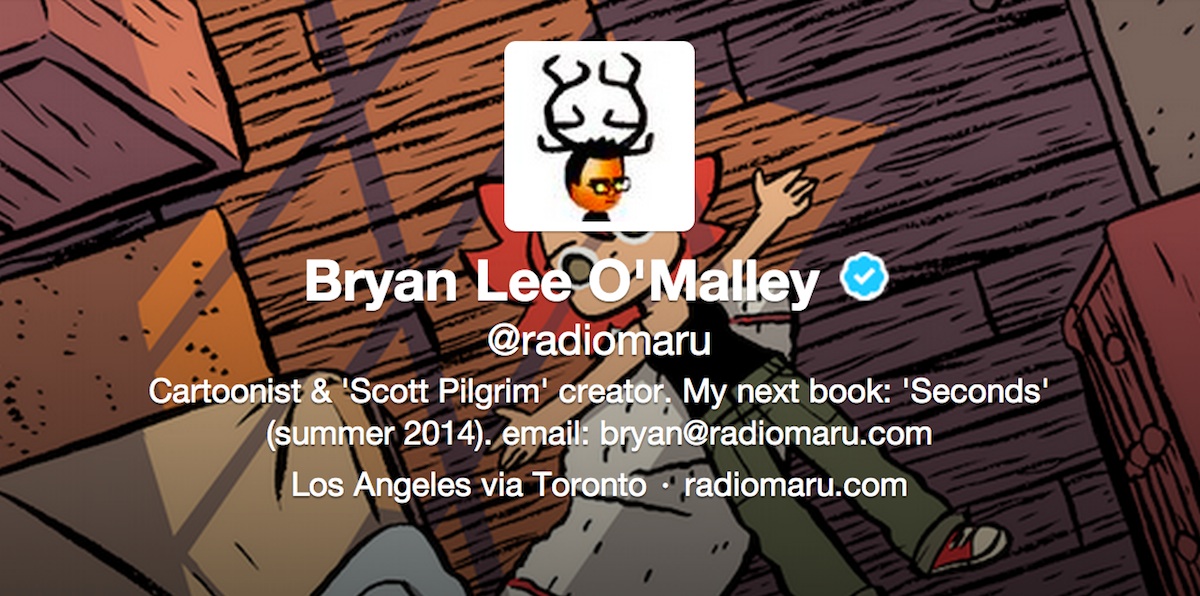 It’s that time again! That’s right, we’re about to attempt to improve your Internet experience by suggesting a person we think you should be following on Twitter. That person is Scott Pilgrim creator, author, and artist Bryan Lee O’Malley, because he’s still writing comics and being hilarious, and you can get in on it.