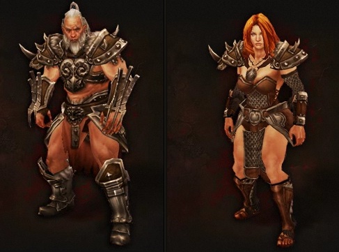 In my eyes, this is damn near perfect. I can tell that these two are from the same culture, and that they perform similar tasks. Some of the style differences are obviously inspired by gender, but in such a way that feels both realistic and artistically appropriate. The male Barbarian is carrying more weight than the female, but in terms of realism, that makes sense. These are two characters who can do the same things, just in slightly different ways. Exactly how it should be.