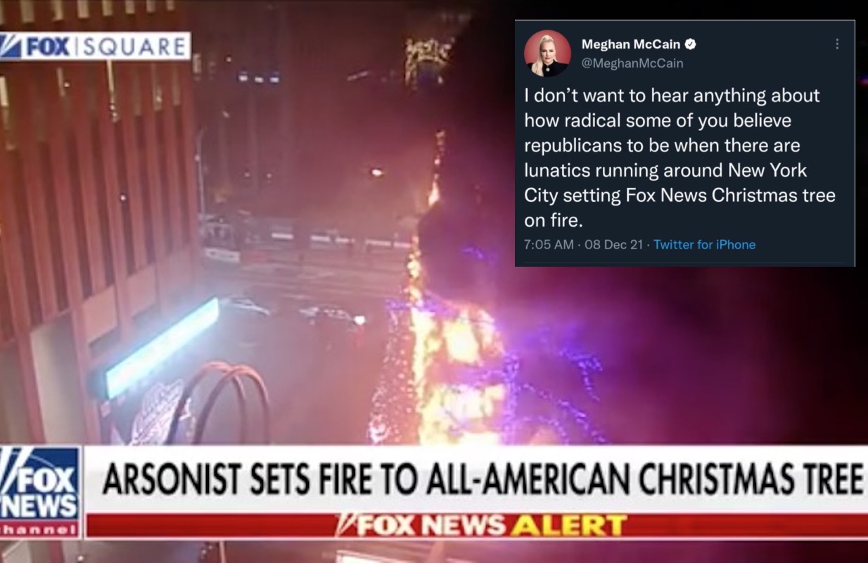 But what seems to be the worst take of all came from Meghan McCain, who tweeted, “I don’t want to hear anything about how radical some of you believe republicans to be when there are lunatics running around New York City setting Fox News Christmas tree on fire.”