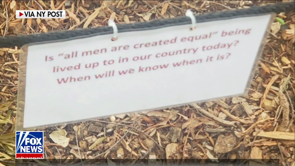 The sign reads: “Is ‘all men are created equal’ being lived up to in our country today? When will we know that it is?” That’s the kind of question you’d ask grade-schoolers to write essays about but these grown men simply cannot handle it. “What does that—I mean, are you kidding me??” Kilmeade stammers as both men shake their heads in disbelief that a historical tour would dare ask people to think about history.