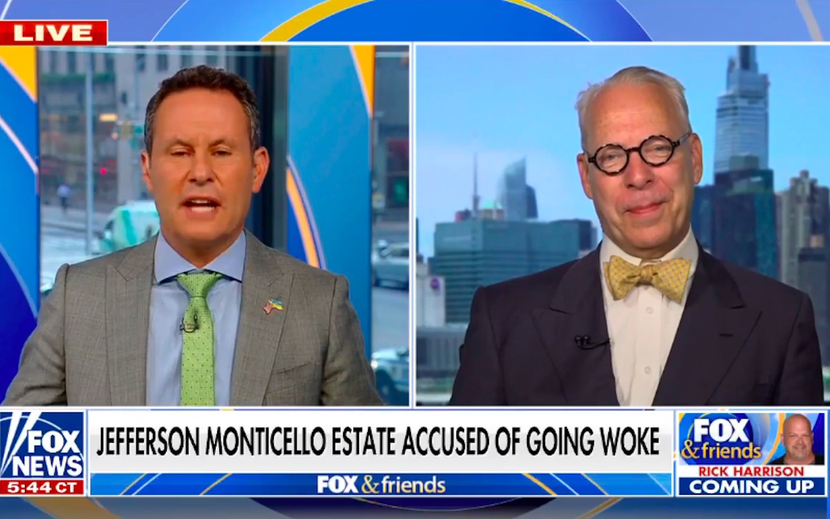 Host Brian Kilmeade spoke to a man named Jeffrey Tucker, the founder of a right-wing think tank called the Brownstone Institute, and he’s upset that a recent tour of Thomas Jefferson’s historic Monticello estate was too “woke.” And, as you probably guessed, yes he does look like this: