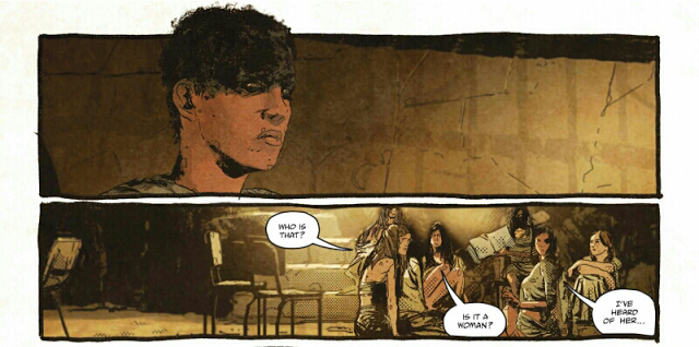 The movie narrative felt inclusive to me of differences between the wives: whether they wanted to keep Joe’s baby, or wanted to abort/adopt out of their current pregnancy and have children later with someone else, or wanted no children at all, they all were united in not wanting to bear warlords. Now the comic has twisted that to be a statement about a specific child, making the women’s flight for freedom just as much about “protecting” that child from warlord-training as it was about making reproductive choices on their own.