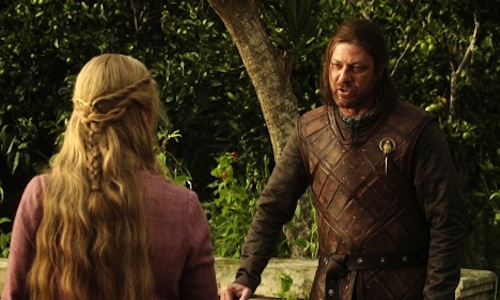 The King’s Landing of Lol, No. Ned is blundering his way around, as usual, and decides to — wait for it — confront Cersei with everything he knows about her. For those of you also slapping your head, the internet is here for you with Stupid Ned Memes. Go, and be grateful. Cersei literally pauses for one second, then owns it. She’s even smizing a little. Fierce bitch. She gets very Wuthering Heights on Ned as she tells him Jamie and her were meant to be together. She does throw in a little nod to the fact she did once love Robert — but he loved Ned’s sister more than anyone else. She’s being pretty logical, all things considered; but I’m willing to admit she may just seem that way by comparison to every other nudnik in Westeros.