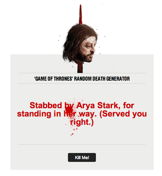 Game of Thrones Random Death Generator Helpfully Lets You Know How You’d Die in Westeros