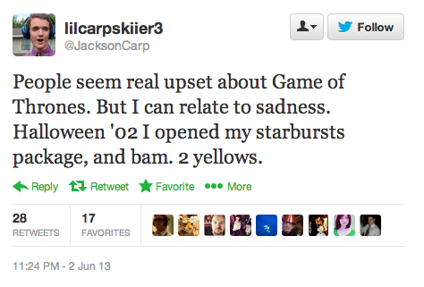 Laughter is the best medicine, but that phrase should come with a caveat saying, “unless you’re using it to deflect some crippling emotional pain, in which case it will only make things worse when you finally do experience it.” Keep making your jokes, Twitter. Tomorrow you’re going to find yourself sobbing alone in a bathroom stall and you won’t know how to stop.
