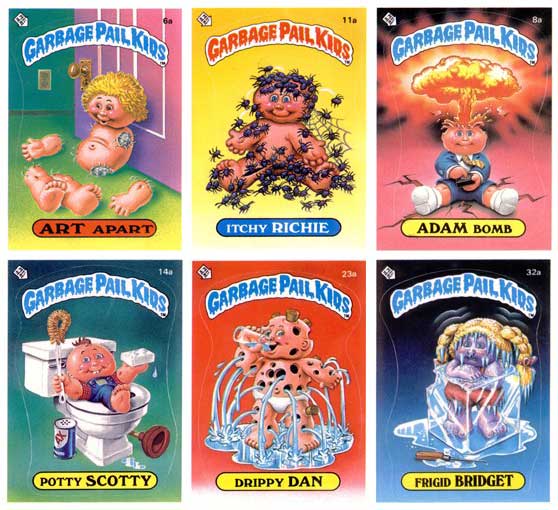 For those unfamiliar with the Garbage Pail Kids, they were a symbol of badassery in the late 1980s. If you were one of those kids who were trying to find a grosser, more demented answer to the wildly popular (and innocent) Cabbage Patch Kids — or torture girls who had Cabbage Patch Kids — then these were the cards you brought to school with you, which you traded during super-secret, under-the-table dealings when the teacher was writing on the blackboard. They were a direct parody of the Cabbage Patch Dolls (which actually may have taken over the world in the early 1980s) and were created in 1985 by Pulitzer Prize-winning cartoonist Art Spiegelman. And they were weird. And disgusting. They pushed every limit, crossed every line, and they were what the cool kids who smoked cigarettes behind the school had their hands on “back in the day.” Here are some pictures:
