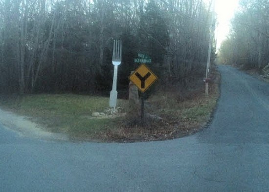 (a fork in the road at a fork in the road, via Bits and Pieces)