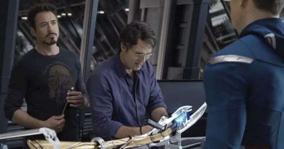 A new German trailer for The Avengers is out today, and it includes some extra footage with Tony Stark (Robert Downey, Jr.) being a snarky jokester with Bruce Banner (Mark Ruffalo) and Steve Rogers (Chris Evans). The video and translations of the Stark Snark after the jump! Montieren (Assemble)!