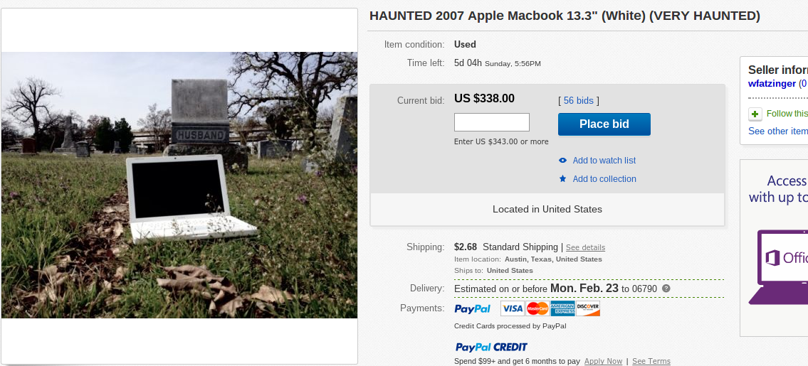 As the seller of the $338 previously used Macbook repeatedly asserts, he is “NOT a computer expert,” but ever since he left his laptop overnight in a graveyard, the machine has developed some extra features: