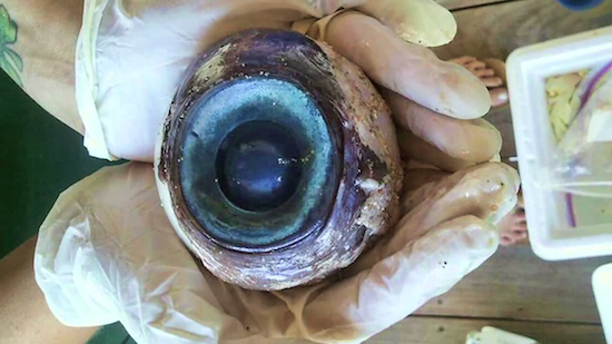 Covacci noted that the eye was very fresh, and was still bleeding when he put it into the bag, painting a pretty appealing visual if you’re into bleeding ocean eyeballs.