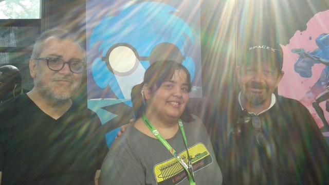 Gilbert Hernandez, Teresa, and Darwyn Cooke having somehow gotten stuck in a J.J. Abrams movie. NYCC 2015.