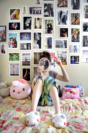 Remember your bedroom as a teenager? Plastered with posters, evidence of your budding social life, the graffiti of youth … Photographer Rania Matar has conducted a project for which she photographs teenagers in the United States and the Middle East, at home in their bedrooms. And it just goes to show, there’s no wrong way to be a girl. (And being one hasn’t changed too much, either — there’s surely a picture of my Jim Carrey/movie geek wallpaper floating around somewhere.)
