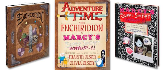 In addition to a copy of the DVD, our lucky winner will also receive the new Adventure Time: The Enchiridion & Marcy’s Super Secret Scrapbook by the father-daughter duo who voices Lord of Evil (Martin Olson) and Marceline the Vampire Queen (Olivia Olson). The book is from the same creative team behind the New York Times-bestselling Adventure Time Encyclopaedia.