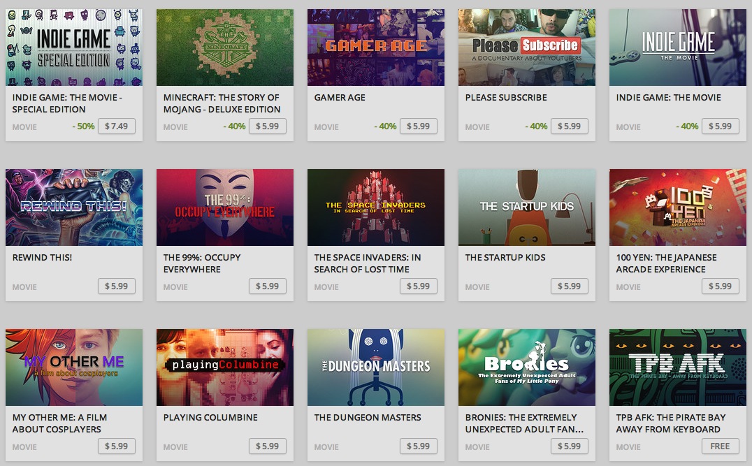 So at this point, it’s a waiting game, as GOG took a step back and found some smaller partners who were more willing to shake things up and take the lead on the DRM-free charge, which will hopefully lead these studios to make good on their “we’re right behind you” indications. Yesterday’s movie/TV platform launch played to GOG’s strengths and was comprised of gaming documentary offerings from the production company behind the Star Craft II documentary Good Game, Nine Hour Films, and its distributor Devolver Digital, as well as the Minecraft documentarians 2 Player Productions, Dobi Media, and more.