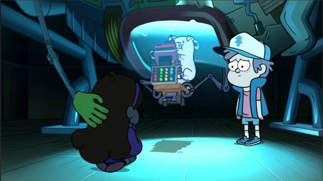 It’s also heartrending to continue seeing these glimpses of Stan as a frustrated artist–he wanted to work in stop-motion, he clearly creates all the (sometimes pretty impressive) exhibits in the Shack himself, and even what we see of his cons have a real elaborate edge to them (he made that balloon in “The Love God” within HOURS). And while his relationship with Dipper might have an unfortunate element of toxic masculinity, he’s warm and appreciative (…in his way) of Mabel’s artistic work, as someone who probably wasn’t encouraged for his nonstandard intelligence and skills (I mean, we’ve met his dad; yikes).