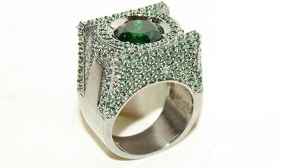 Well, isn’t that a whole lotta shiny stuff, huh? Above is a ring by nOir Jewelry worth $1,000 that Warner Bros. wants to give to a “lucky” contest winner. In anticipation of the release of Green Lantern this Friday, WB is running a contest on Twitter, in which one enters oneself by retweeting this post. If you really want it. So, what’s all that stuff on it that’s worth $1,000?