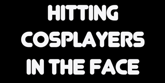 Most of the cosplayers react with nervous laughter, which is I’m sure how most human beings would respond when they think an accident like that has occurred. But he pressed on, editing together just over two minutes of footage of himself hitting attendees in the face over and over.