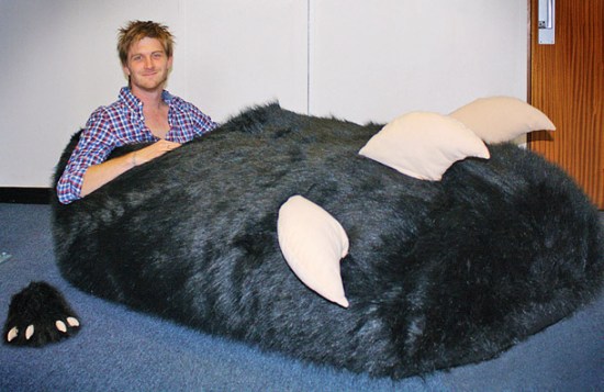 27-year-old Tom Boddingham’s feet are different sizes; his right foot is a size 13, and his left foot is a size 14.5. He ordered a pair of custom-made slippers to fit his differently-sized feet, but the manufacturers in China misread the decimal point in the larger, size 14.5 slipper, and produced a size 1,450 slipper instead and shipped it out to Boddingham. The slipper measures 7 feet long, and is large enough to comfortably fit a person inside for use as a very odd sleeping bag.