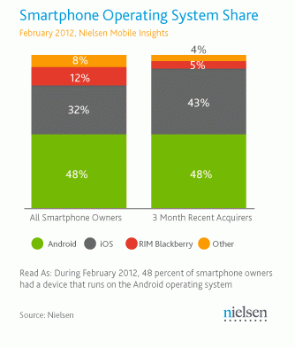 The rate at which the smartphone share has been growing has been growing as well. In February 2011 the smartphone share was only 36%. If the pattern keeps up, predicitons are that by this time next year 70% of U.S. cellphones will be smartphones. It’s only a matter of time before dumbphones will be as antique as beepers or bag-phones.