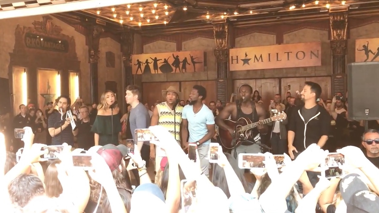 Hamilton fans will be thrilled, then, to watch a special Ham4Ham that included cast members of Hamiltour, music director Alex Lacamoire, and Lin-Manuel Miranda himself in honor of opening night at the Hollywood Pantages Theatre. To a cheering crowd, they performed a “California Mashup” just for the crowd that kicks off with, naturally, with “California Love” and dives into all the expected hits like “Hotel California” and “California Girls.” I miss my home state, y’all.