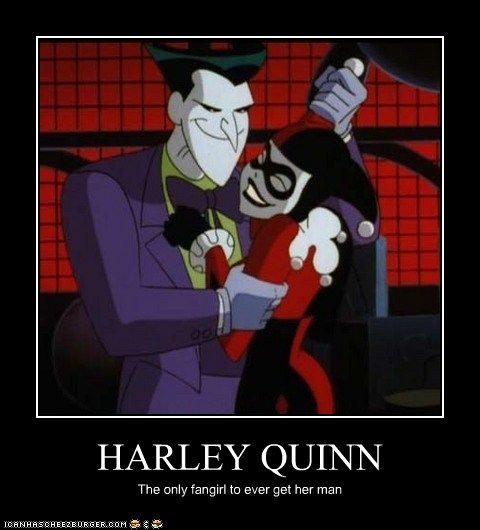 I also think it’s worth rethinking the framing of Harley Quinn as “hot and crazy,” as well as the framing of “fangirls” as being “crazy” (but also “hot”) and reducing Harley to try to make her fit into that classification. The memes fall short of acknowledging why her story matters to fangirls, and why it’s probably not a coincidence that Harley Quinn remains such an incredibly popular character to cosplay. It’s not because she’s “hot and crazy.” Maybe it’s because she’s a “fangirl” … but in addition to being “The Only Fangirl Who Ever Got Her Man,” she’s also a “fangirl” who far exceeded “her man” in terms of popularity, success, and eventual happiness. That’s the ultimate triumph.