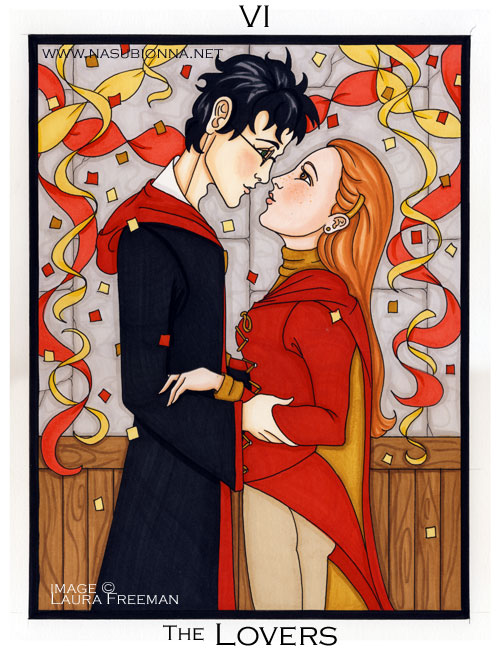 I’m not a tarot user but I find the art on many decks to be incredibly beautiful. A few years ago, Dark Horse was going to produce a Buffy the Vampire Slayer deck but it fell through. These fan-made Harry Potter tarot will never be sold in stores due to copyright issues but artist Laura Freeman, nasubionna on DeviantArt, did some really great work on them. Hit the jump to see more, plus her justifications for who she chose for which card.