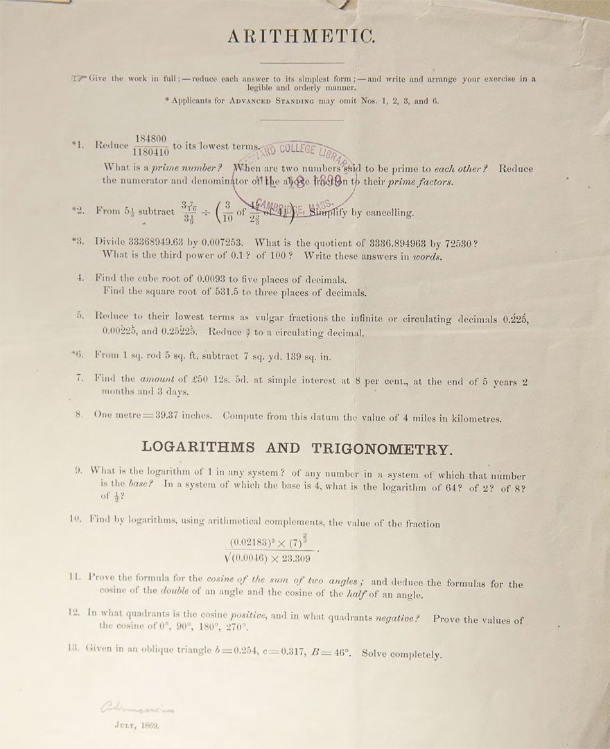 Unless you had a very solid classics education in high school, know the sources of the Danube, the Volga, the Ganges, and the Amazon off the top of your head, and are comfortable tackling some hoary arithmetic and plane geometry without the help of a calculator or Wikipedia, you’re likely to find this Harvard entrance exam from 1899 more than a little challenging. (Thanks to the NYT for digging it up.)