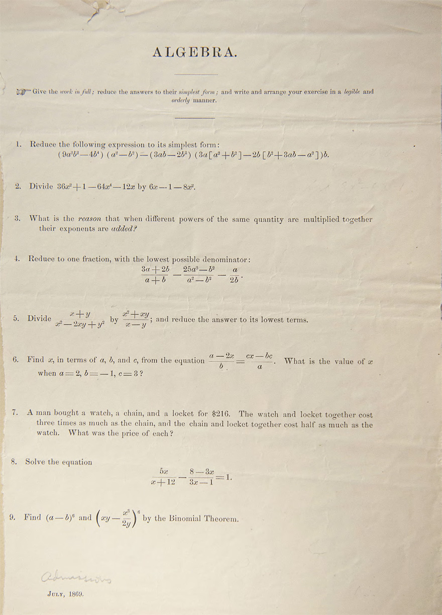 Granted, Latin and Greek were de rigueur for the well-heeled youths of the day — they probably would have been stumped at the Spanish and Chinese that today’s high school students are learning — but there are plenty of college graduates today who would flee in terror at that first polynomial equation.