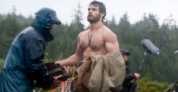 You can see Cavill in Immortals next week but you must survive on set photos of Superman since Man of Steel won’t be in theaters until 2013.
