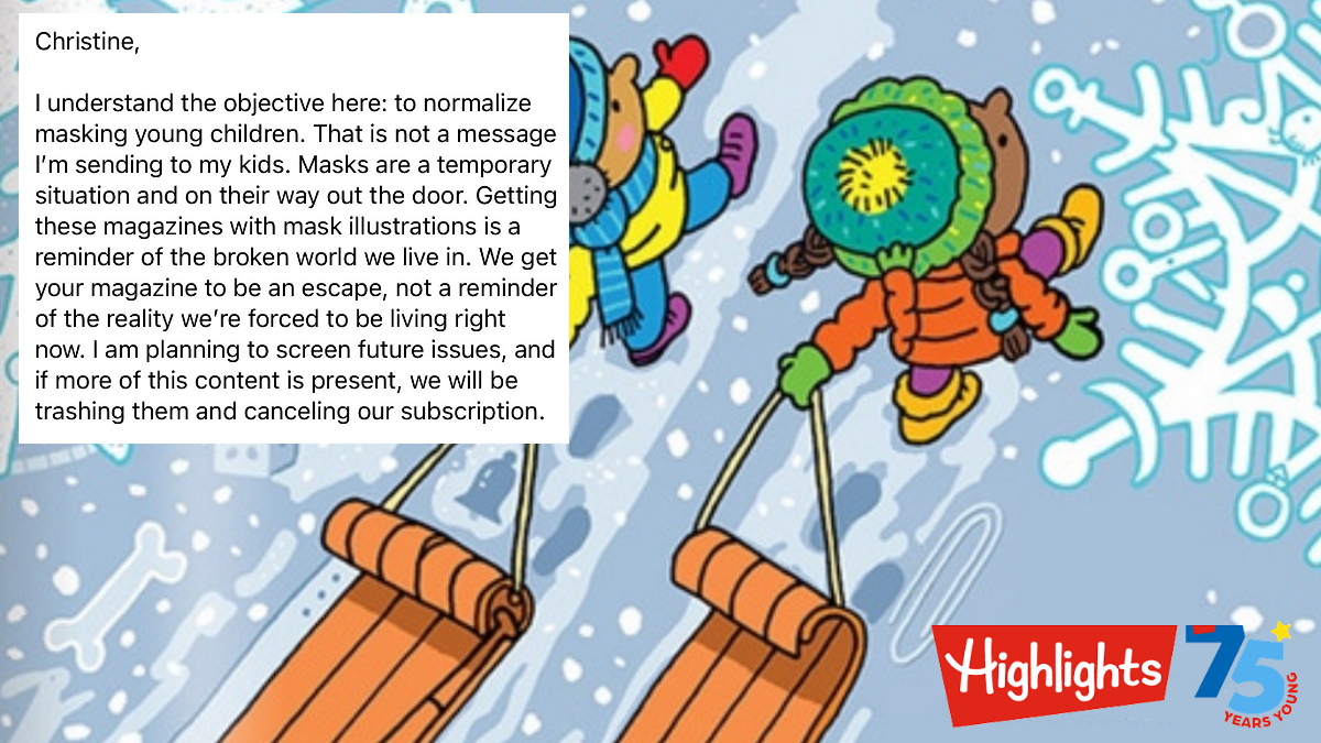 Woman Channels Her Inner “Ted Cruz vs Big Bird” and Tries to Come at Highlights Magazine About Children Wearing Masks