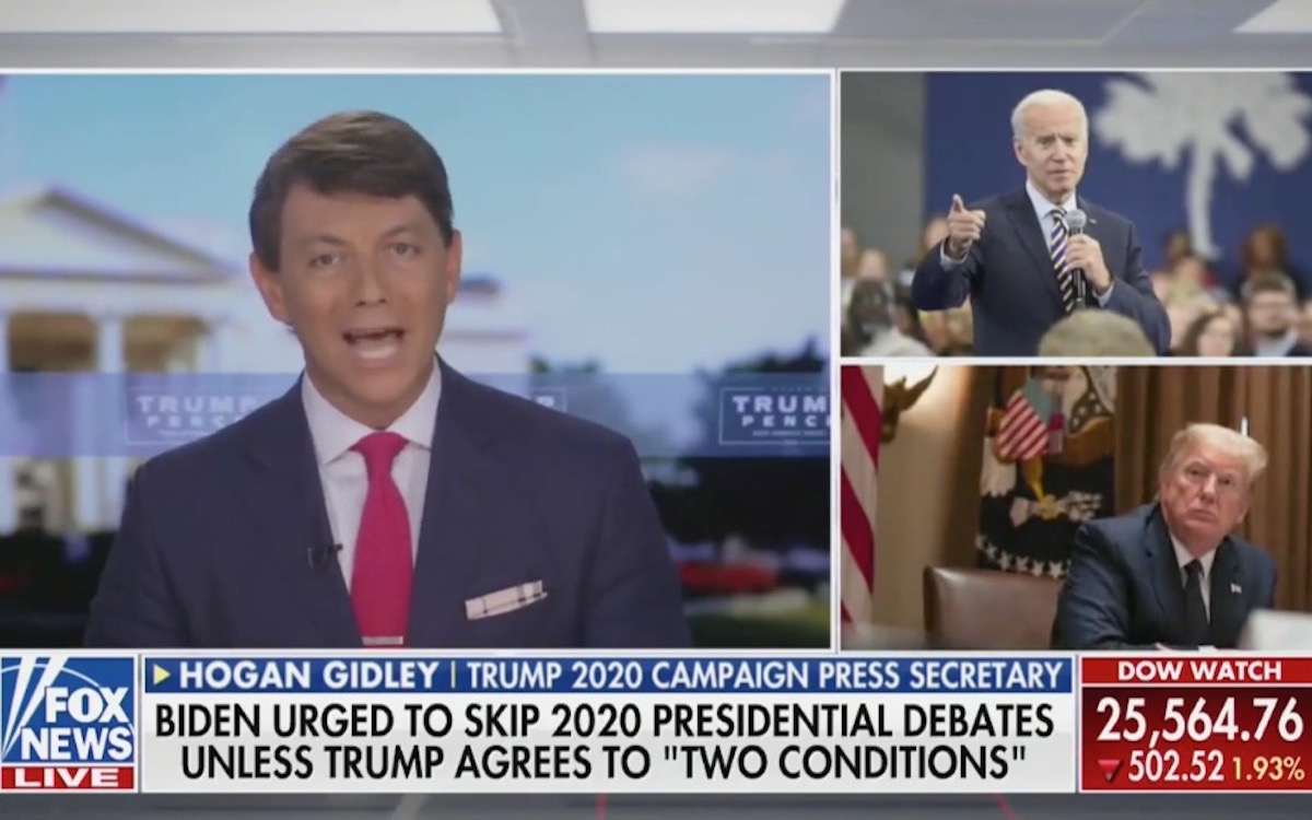 This was never more clear than in a Fox News interview with Trump’s campaign press secretary Hogan Gidley. Gidley was asked about a New York Times article that urged Joe Biden to put conditions on any upcoming presidential debates–namely that Trump have to release his tax returns and that he agree to real-time fact-checking. Neither of those things are likely to happen, but they’re good ideas.