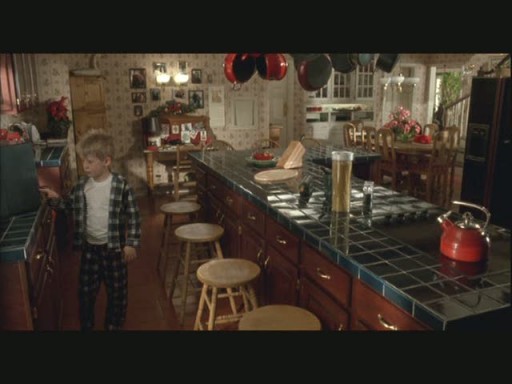 And the same kitchen today. Set designers said they decorated much of the house in red and green to give the home (which can really be considered another main character of the movie) a Christmasy feel.