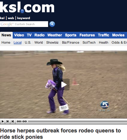 Headline of the Day: “Horse Herpes Outbreak Forces Rodeo Queens to Ride Stick Ponies”
