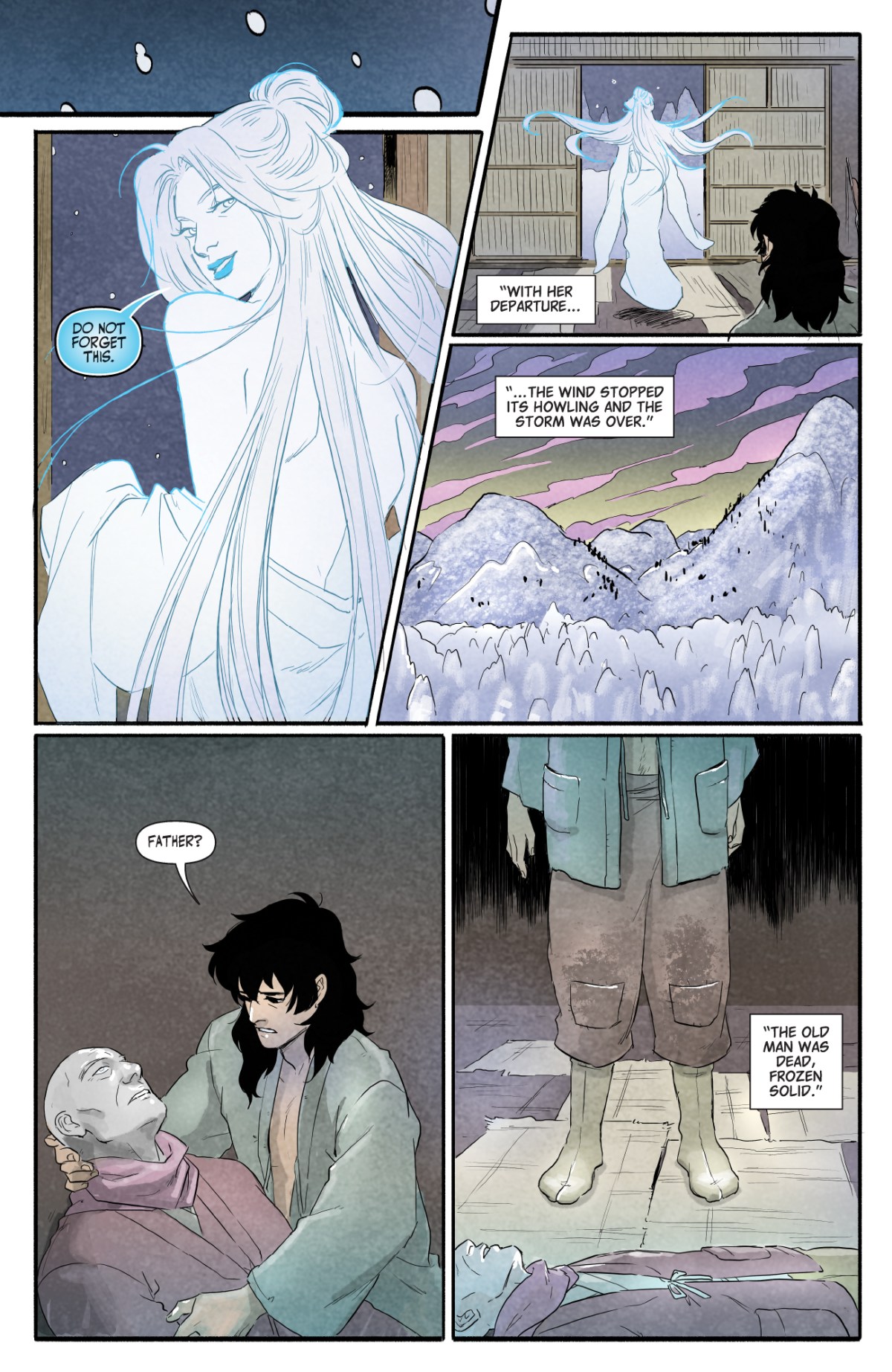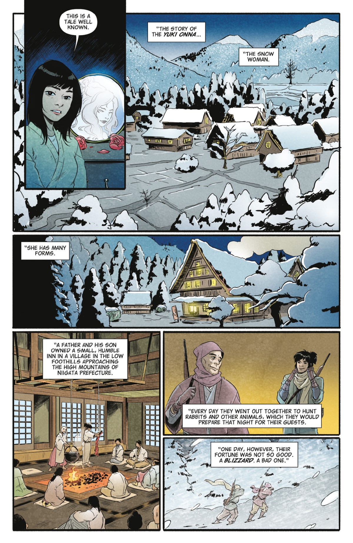 The full-color, hardcover graphic novel containing the whole Hungry Ghosts series is out today, October 2nd, and we’ve got an exclusive excerpt for you. The following is part of the story The Snow Witch, drawn by Irene Koh. Check it out and let us know what you think below. (Click to enlarge.)