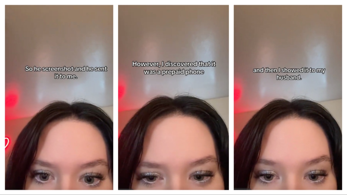In her latest TikTok, @cassdamm explained that when her husband got a series of missed calls at 2 a.m., he asked her if she knew who was calling. She didn’t recognize the number, but her “nosy” nature compelled her to find out. She launched a “hunt” to trace the number, and discovered it was a prepaid phone bought at a shop in her husband’s hometown. She realized she couldn’t track down the owner directly, so she asked her friend Caroline to message the number and gather details.