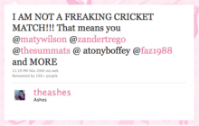 Well, this is just unfortunate. A woman with the Twitter handle @theashes was mistaken for a popular cricket match of the same name, and has been inundated with Twitter messages from diehard cricket fans since Friday.